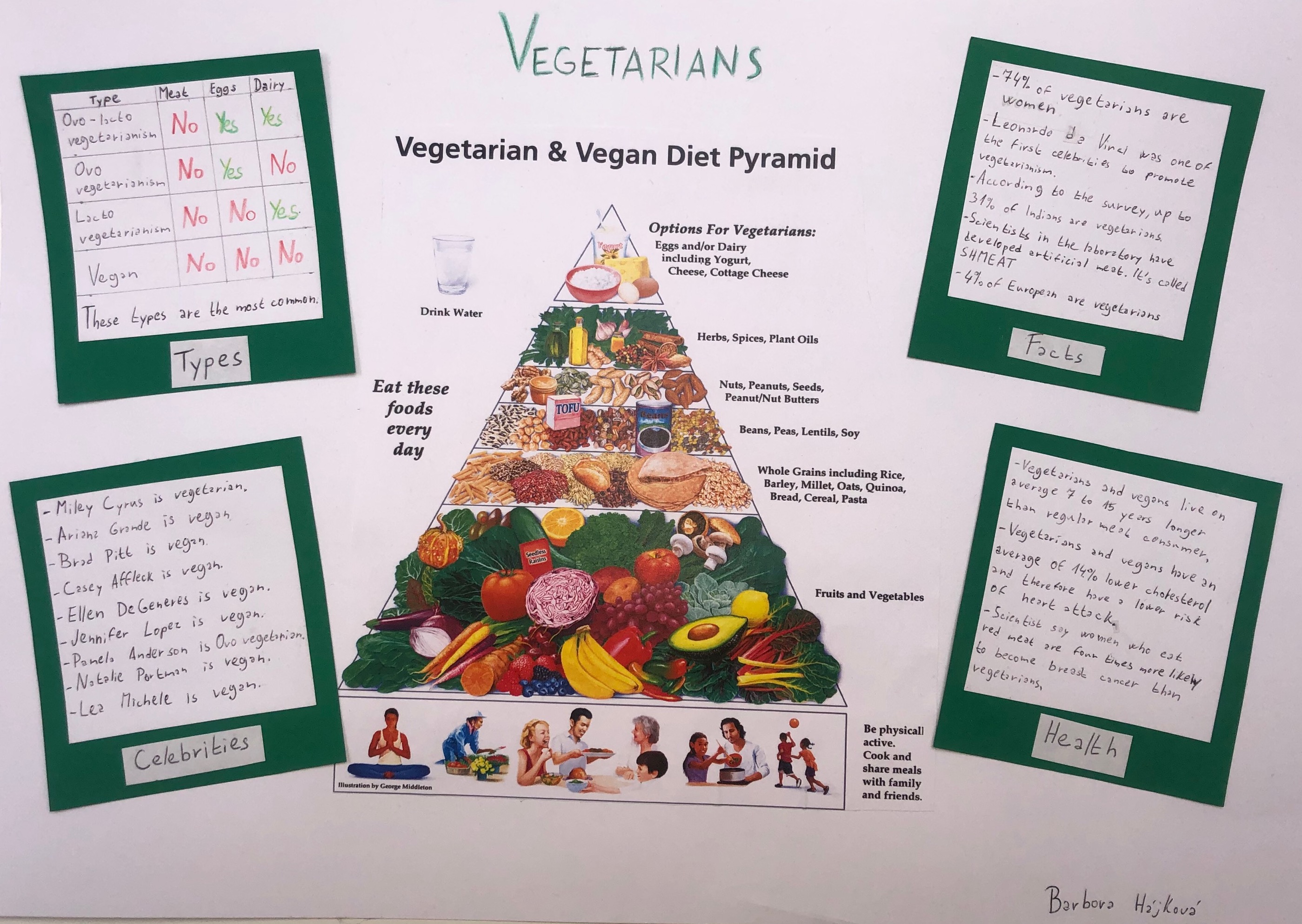 Tento projekt v rámci anglického jazyka v 1.E, který vzešel z návrhu samotných studentů, byl zadán velmi volně – zpracovat téma, které je pro mě důležité, způsobem, který mi vyhovuje. Vznikly tak plakáty, prezentace a videa na širokou škálu témat. Několik ukázek prací naleznete v přílohách a také na videu.